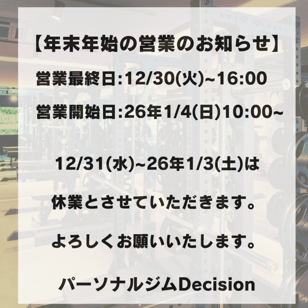【虎ノ門ヒルズ駅から徒歩7分のパーソナルジム、西新橋周辺、ダイエットにオススメのパーソナルジム】年末年始の営業について